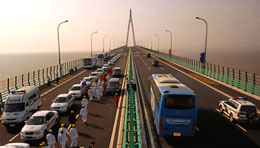 杭州灣跨海大橋?qū)⒖s短寧波至上海間的陸路距離120余公里。新華社記者:譚進(jìn)