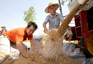 來自農(nóng)業(yè)部的統(tǒng)計(jì)顯示,今年各地冬小麥大多都呈現(xiàn)“三增”趨勢(shì),即播種面積增加、單產(chǎn)增加、總產(chǎn)增加。我國小麥播種面積3.2億多畝,比上年增加90萬畝,此外,今年小麥質(zhì)量也普遍較高,預(yù)計(jì)二等以上占絕大多數(shù)。 今年以來,河南、河北、山東三個(gè)最大冬小麥主產(chǎn)省小麥生長(zhǎng)情況良好,整體長(zhǎng)勢(shì)好于去年。3月底農(nóng)業(yè)部農(nóng)情調(diào)查顯示,全國冬小麥長(zhǎng)勢(shì)良好,總體好于前期和上年同期。從全國冬小麥返青苗情來看,一、二類苗比例達(dá)到了82.3%,比上年同期增加了2.8個(gè)百分點(diǎn)。今年冬小麥苗情最突出的是旺長(zhǎng)面積明顯減少,去年旺長(zhǎng)最大面積達(dá)到了4700萬畝,而今年最大面積只有661萬畝。 目前,隨著全國跨區(qū)機(jī)收儀式在河南南陽的正式啟動(dòng),我國自南向北進(jìn)入小麥?zhǔn)崭畹募衅冢笠?guī)模收割以來,暫未遇到惡劣的災(zāi)害性天氣,如果不出意外,又一個(gè)豐收年幾成定局。
