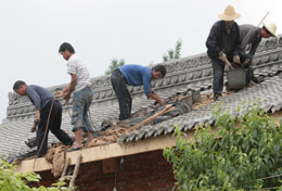 5.12地震使甘肅省隴南市成縣遭受重大損失。目前,全縣災(zāi)后重建工作全面展開,在廣大農(nóng)村興起了建房熱潮。5月31日,甘肅省隴南市成縣紅川鎮(zhèn)韓莊村的村民在建新房。新華社發(fā)