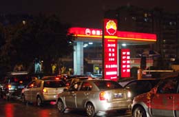 一個(gè)中石油的加油站擠滿了想在油價(jià)上漲前加油的轎車。本報(bào)記者:劉潺