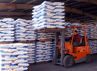 | 在長(zhǎng)春玉米深加工轉(zhuǎn)化龍頭企業(yè)——大成集團(tuán),工人在運(yùn)送產(chǎn)品。新華社記者
