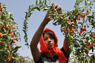 7月18日,一名外地打工姑娘在寧夏中寧縣舟塔鄉(xiāng)萬畝采摘枸杞。被譽(yù)為“中國(guó)枸杞之鄉(xiāng)”的寧夏中寧縣枸杞種植面積已發(fā)展到16萬畝。這個(gè)縣的枸杞不但在國(guó)內(nèi)各大中城市入超市、上餐桌,還出口美國(guó)、日本、南非、澳大利亞等23個(gè)國(guó)家和地區(qū),年出口總量達(dá)5000余噸,綜合產(chǎn)值達(dá)10億元。新華社記者:劉泉龍