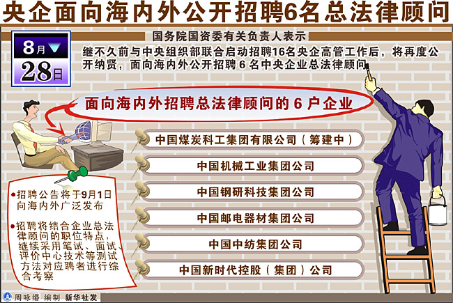 央企面向海內(nèi)外公開招聘6名總法律顧問