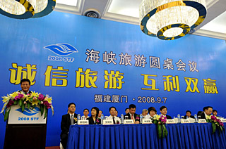 | 9月7日,海峽兩岸旅游界人士在第四屆海峽旅游圓桌會(huì)議上。新華社記者