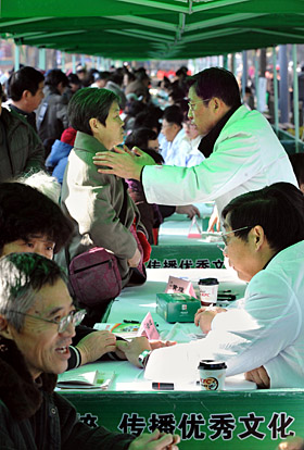 7日,“中醫(yī)重要中國行”江蘇站啟動(dòng)儀式現(xiàn)場舉辦的宣傳、義診等活動(dòng)吸引了數(shù)千南京市民。新華社記者 孫參
