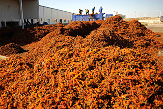 鄂爾多斯是我國(guó)重要的沙棘產(chǎn)地。近年來(lái),鄂爾多斯市引進(jìn)幾家大型沙棘加工企業(yè),項(xiàng)目區(qū)內(nèi)農(nóng)民每年從沙棘種植、管護(hù)、摘果等上面人均增加收入近千元。 圖為農(nóng)民正在東勝區(qū)一家沙棘生產(chǎn)企業(yè)交售沙棘果。新華社記者