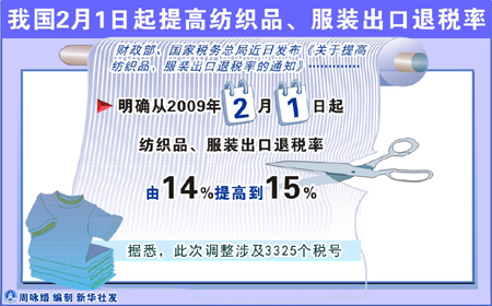 我國(guó)2月1日起提高紡織品、服裝出口退稅率