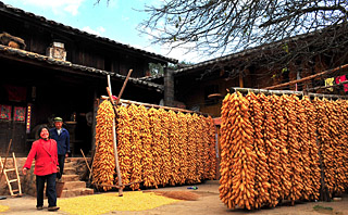 | 云南省祿豐縣土官鎮(zhèn)烏龍?zhí)洞宕迕裢豕庀杉掖笤豪飹鞚M了豐收的玉米。她家8畝玉米地喜獲豐收,可獲得收入1.36萬元。本報記者