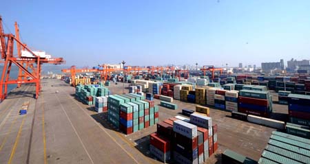 廣西防城港等待轉運的集裝箱。(新華社發(fā)) |