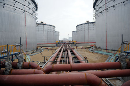 廣西欽州中石油千萬噸煉油項目主要配套工程——碼頭52萬噸原油庫區(qū)一角。(新華社發(fā)) | 憑祥,昔日的中越邊境小城,如今是第四個獲得國務院批準設立的綜合保稅區(qū);欽州,濱海之城,曾是孫中山先生《建國方略》中規(guī)劃的“南方第二大港”,然而多年來這只是欽州人一個遙遠的夢想,如今國家批準設立廣西欽州保稅港區(qū),中石油千萬噸煉油項目等一批重大項目紛紛落戶;北海,以美麗的海灘聞名遐邇,如今鐵山港石化、出口加工區(qū)等工業(yè)格局已經(jīng)形成,并依然保持著紅樹林的郁郁蔥蔥和珊瑚礁的繁茂。 2008年1月,國家批準實施《廣西北部灣經(jīng)濟區(qū)發(fā)展規(guī)劃》,廣西北部灣經(jīng)濟區(qū)開放開發(fā)上升為國家戰(zhàn)略。如今廣西北部灣經(jīng)濟區(qū)臨港產(chǎn)業(yè)發(fā)展雛形初現(xiàn),產(chǎn)業(yè)集群效應凸顯,區(qū)域性投融資平臺不斷完善,在開放開發(fā)中實現(xiàn)了重大突破。廣西壯族自治區(qū)統(tǒng)計局統(tǒng)計,2008年廣西北部灣經(jīng)濟區(qū)(南欽北防四市),GDP達到2219.7億元,比廣西全區(qū)高2.7個百分點,對廣西GDP的貢獻率達到35.8%。