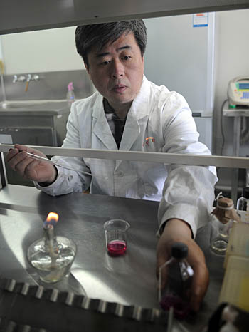 圖為東北師范大學教育部農業(yè)與醫(yī)藥基因工程研究中心、藥物基因和蛋白篩選國家工程實驗室的工作人員在進行藥物篩選實驗。
