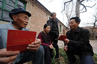 | 2008年11月11日,河北省青縣合作養(yǎng)老聯(lián)合會(huì)耿官屯村分會(huì)的會(huì)長(zhǎng)潘炳君(右一)在解答村民關(guān)于合作養(yǎng)老的咨詢。新華社資料照片 | 為了抵御國際金融危機(jī)對(duì)我國經(jīng)濟(jì)帶來的沖擊和不利影響,中央及時(shí)推出了“擴(kuò)內(nèi)需、保增長(zhǎng)、調(diào)結(jié)構(gòu)”的應(yīng)對(duì)方針。與此相適應(yīng)的是,積極的財(cái)政政策和適度寬松的貨幣政策在2008年底應(yīng)時(shí)而出,結(jié)構(gòu)性減稅已然成為2009年稅收政策的一大亮點(diǎn)。 采訪中,多位專家學(xué)者均表示,在2009年甚至稍后的一段時(shí)間里,這種“反周期擴(kuò)張”的財(cái)政政策將在總量上與貨幣政策密切配合,同時(shí)優(yōu)化財(cái)政支出結(jié)構(gòu);與此同時(shí),稅制改革將繼續(xù)推進(jìn),結(jié)構(gòu)性減稅將作為稅改重點(diǎn)。