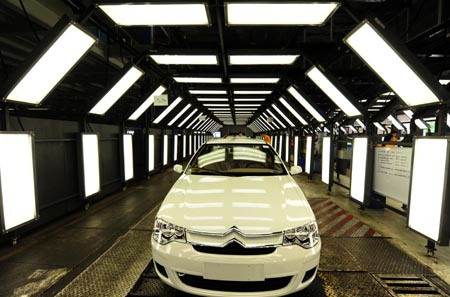 東風(fēng)汽車公司一季度銷售回暖,實(shí)現(xiàn)整車銷售34.1萬輛,相比2008年第四季度增長10.4%,圖為東風(fēng)汽車旗下的神龍汽車有限公司總裝車間的新車在經(jīng)過檢測線。新華社記者:程敏