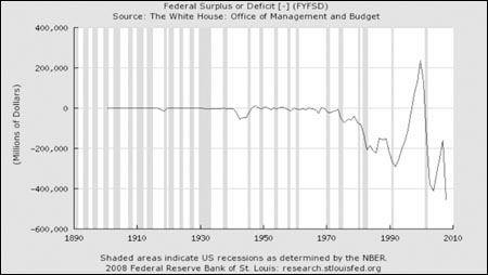 | 60年來(lái),美國(guó)政府收支基本上是赤字 |