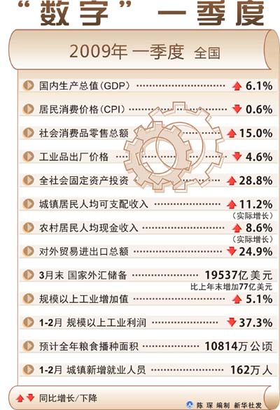 國(guó)家統(tǒng)計(jì)局16日公布的一季度經(jīng)濟(jì)運(yùn)行數(shù)據(jù)顯示,2009年一季度我國(guó)GDP增速為6.1%,今年一季度的經(jīng)濟(jì)增長(zhǎng)率比去年四季度回落了0.7個(gè)百分點(diǎn),而去年四季度比三季度回落了2.2個(gè)百分點(diǎn),經(jīng)濟(jì)大幅下滑之勢(shì)明顯收斂。 根據(jù)國(guó)家統(tǒng)計(jì)局測(cè)算,一季度6.1%的經(jīng)濟(jì)增速中,4.3個(gè)百分點(diǎn)來(lái)自消費(fèi),2個(gè)百分點(diǎn)來(lái)自投資,而出口的貢獻(xiàn)為負(fù)0.2個(gè)百分點(diǎn)。投資增速和社會(huì)消費(fèi)品零售總額實(shí)際增速“雙加快”,支撐起國(guó)際金融危機(jī)沖擊下的中國(guó)經(jīng)濟(jì)增長(zhǎng)。 一季度,全社會(huì)固定資產(chǎn)投資同比增長(zhǎng)28.8%,比去年同期加快了4.2個(gè)百分點(diǎn)。其中,新開(kāi)工項(xiàng)目計(jì)劃總投資增長(zhǎng)87.7%,鐵路投資增長(zhǎng)102%。這說(shuō)明,從去年底開(kāi)始實(shí)施的4萬(wàn)億元投資計(jì)劃的效應(yīng)正在逐步顯現(xiàn),新項(xiàng)目密集開(kāi)工,基礎(chǔ)設(shè)施投資猛增。 國(guó)家統(tǒng)計(jì)局新聞發(fā)言人李曉超說(shuō),中央擴(kuò)大投資的政策效果將繼續(xù)發(fā)揮作用。去年中央擴(kuò)大投資的1000億元已全部落實(shí),今年初的1300億元投資計(jì)劃也已下達(dá)了1100億元。未來(lái)投資仍會(huì)保持快速增長(zhǎng)勢(shì)頭。