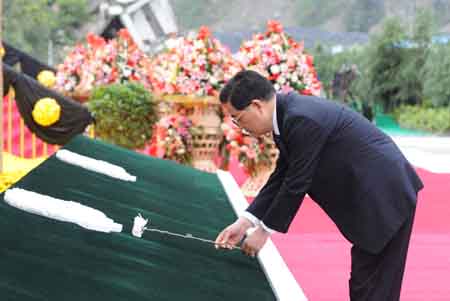 5月12日,紀念四川汶川特大地震一周年活動在汶川縣映秀鎮(zhèn)隆重舉行。紀念活動上,胡錦濤總書記深情俯下身子,將一枝潔白的菊花敬獻在四川汶川特大地震記事墻前,深切思念在地震中不幸罹難的同胞和在抗震救災斗爭中英勇獻身的烈士。新華社記者:李學仁 攝