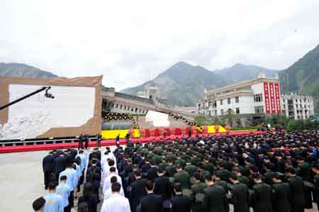 紀念汶川特大地震一周年活動現(xiàn)場。新華社記者:饒愛民 攝