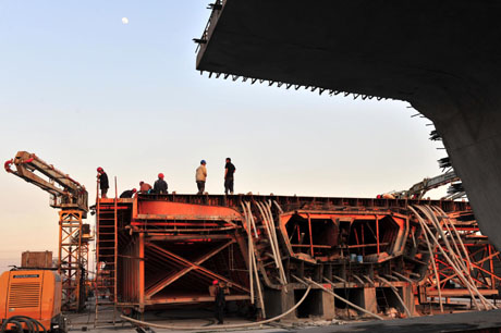 由山東高速集團(tuán)投資建設(shè)的青島海灣大橋鋼箱梁加工與制造第一、二合同段鋼箱梁總拼裝基地,日前在青島四方港區(qū)建成正式投產(chǎn)。這一基地是目前國內(nèi)最大的鋼箱梁總拼裝基地。 圖為工人在進(jìn)行標(biāo)準(zhǔn)梁段拼裝焊接。