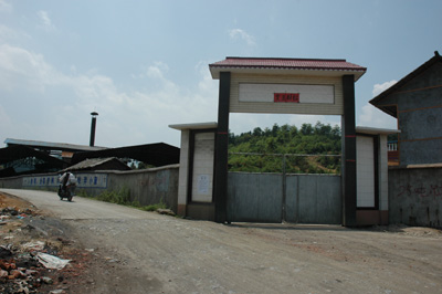 沒(méi)有掛任何牌子的湖南省武岡市精煉錳加工廠,大門(mén)上方的“招財(cái)進(jìn)寶”四個(gè)大字格外醒目。 |