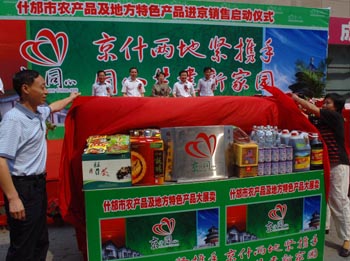 當(dāng)日,“什邡市農(nóng)產(chǎn)品及地方特色產(chǎn)品進(jìn)京”啟動(dòng)儀式在北京舉行,首批到京銷售的產(chǎn)品包括10個(gè)系列50多個(gè)品種,價(jià)值1000多萬元。這項(xiàng)活動(dòng)是北京援建地震災(zāi)區(qū)的一項(xiàng)新舉措,既可以支持什邡全面恢復(fù)生產(chǎn)、增加農(nóng)民收入,也為北京市民提供了優(yōu)質(zhì)的商品。