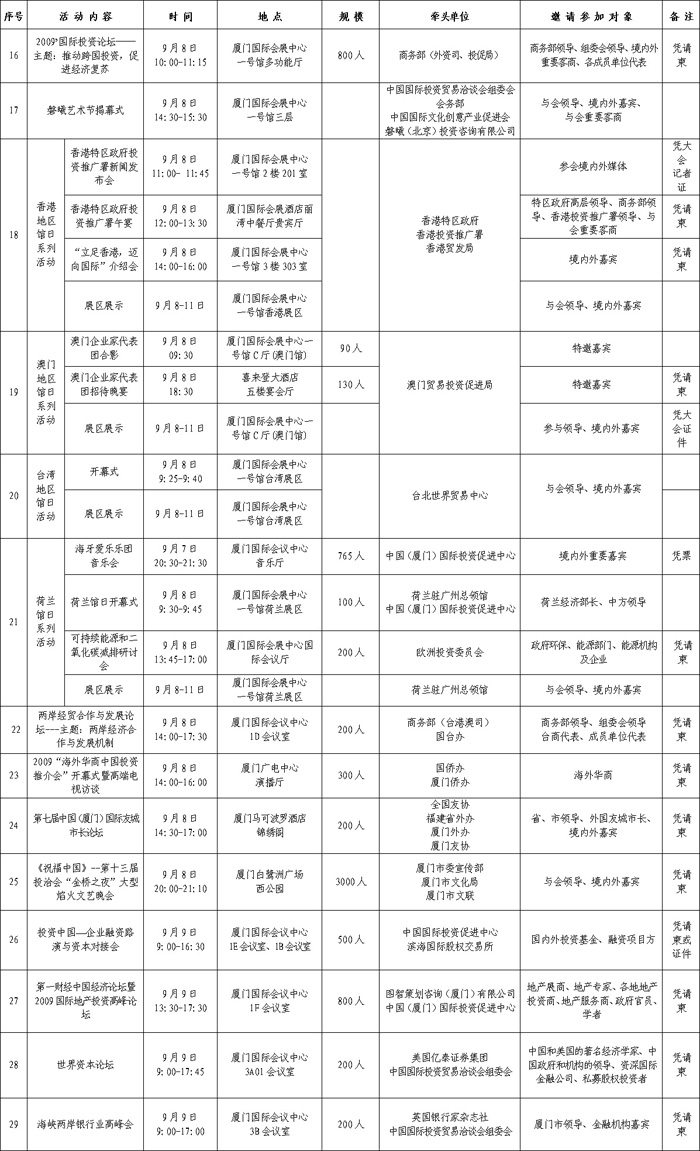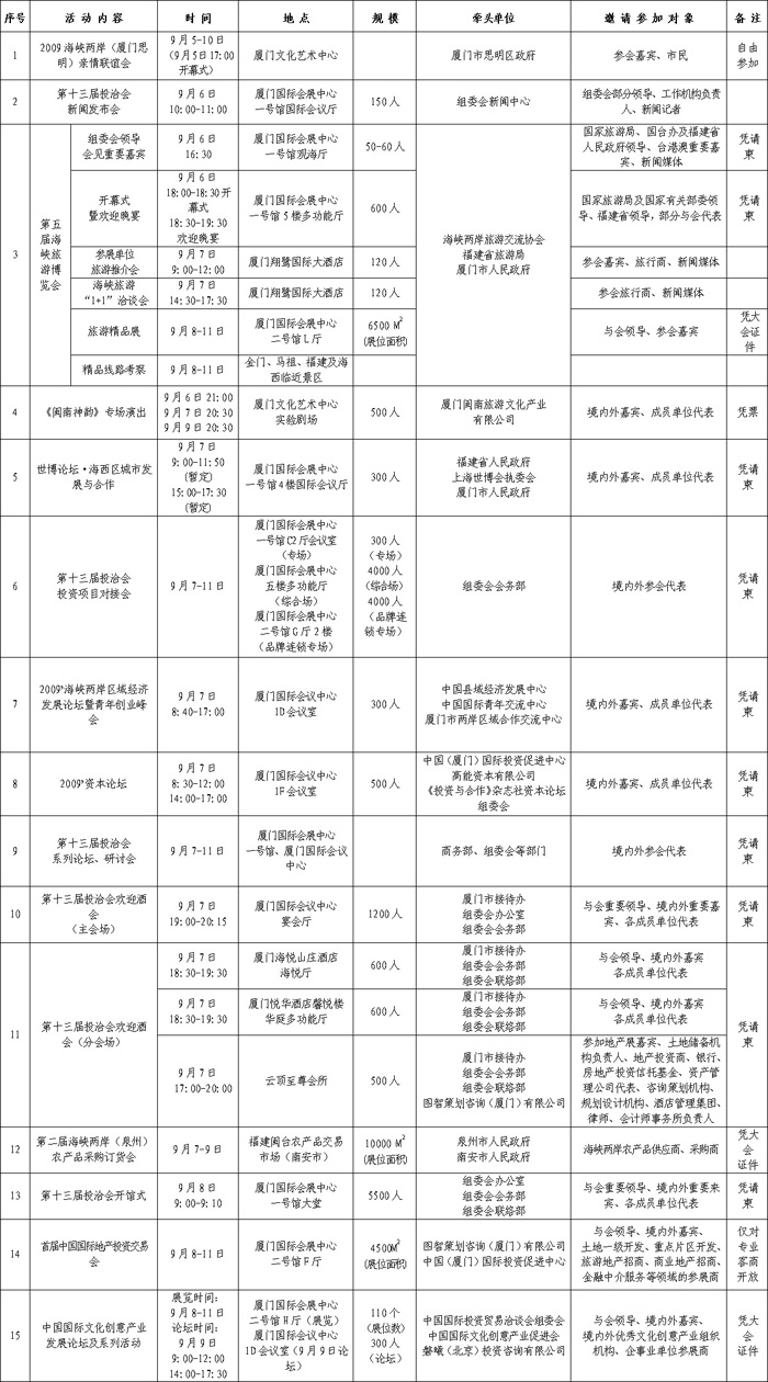 第十三屆投洽會重要活動一覽會[表]