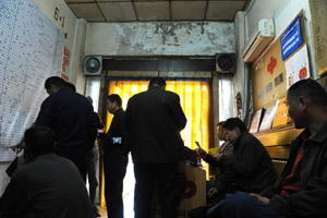 逼仄的投注站里,彌漫著香煙的味道?傆心敲磶讉(gè)人或十幾個(gè)人“駐守”在這里,他們對著懸掛在墻上的福彩雙色球走勢圖苦思冥想,間或用筆在紙上“推算”,也有一籌莫展的,就那么無所適從地觀望。