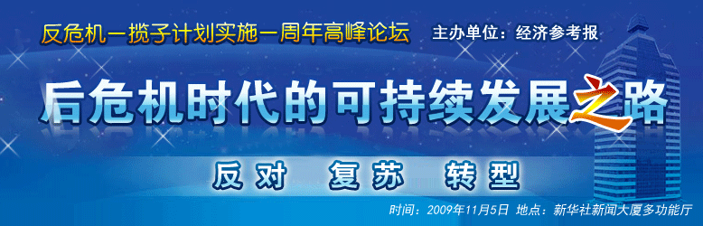 11月5日,是中國經濟值得銘記的日子。一年前的這一天,面對國際金融危機的驚濤駭浪,中央果斷出臺擴內需、保增長的一攬子計劃。時序進入2009年第四季度,國內國際最新數據都在預示著全球經濟正站在復蘇的門檻上。 ??作為最大的新興市場,中國目前復蘇的跡象和艱難都在釋放一個重要的信息,那就是對內可能正在面臨結構調整、對外正面臨貿易保護主義的雙重困擾。專家和學者們認為,現(xiàn)在應盡早考慮“后危機時代”中國經濟如何跨越失衡發(fā)展的模式障礙,走向可持續(xù)發(fā)展之道!【詳細】 |