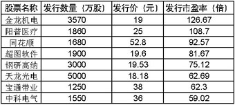 盡管此前普遍預(yù)計(jì),第二批創(chuàng)業(yè)板公司的發(fā)行市盈率可能會(huì)高于首批公司。然而,最近公布的第二批創(chuàng)業(yè)板公司的發(fā)行市盈率之高,仍然超出了多數(shù)人士的預(yù)期。 發(fā)行公告顯示,第二批創(chuàng)業(yè)板公司平均市盈率達(dá)到83.59倍,遠(yuǎn)遠(yuǎn)高于首批創(chuàng)業(yè)板56.7倍的市盈率。其中,金龍機(jī)電以19元的高價(jià)發(fā)行,對(duì)應(yīng)市盈率高達(dá)126.67倍;另一家發(fā)行市盈率過(guò)百的公司是陽(yáng)普醫(yī)療,發(fā)行價(jià)是25元,市盈率達(dá)到108.7倍。明星公司同花順,其發(fā)行價(jià)為52.8元,對(duì)應(yīng)市盈率92.57倍;超圖軟件,發(fā)行價(jià)19.6元,對(duì)應(yīng)市盈率81.67倍;鋼研高納發(fā)行價(jià)為19.53元,對(duì)應(yīng)市盈率75.12倍。就連發(fā)行市盈率最低的中科電氣,發(fā)行價(jià)為36元,市盈率也達(dá)到59.02倍。 在創(chuàng)業(yè)板開(kāi)板以來(lái),盡管監(jiān)管機(jī)構(gòu)屢屢進(jìn)行風(fēng)險(xiǎn)提示,并希望新股擴(kuò)容能有效抑制創(chuàng)業(yè)板二級(jí)市場(chǎng)的投機(jī)炒作,但由于受創(chuàng)業(yè)板第二批8只新股將以較高市盈率發(fā)行的刺激,15日創(chuàng)業(yè)板收漲0.81%,28只個(gè)股中26只飄紅。與此形成鮮明對(duì)比的是,滬指當(dāng)天卻下跌了0.86%. 單就數(shù)據(jù)來(lái)看,第二批創(chuàng)業(yè)板公司的發(fā)行市盈率大大超出了市場(chǎng)預(yù)期。首批28家創(chuàng)業(yè)板公司發(fā)行時(shí),盡管也被業(yè)內(nèi)認(rèn)為發(fā)行市盈率較高,但其平均發(fā)行市盈率也僅為56.7倍,即便當(dāng)時(shí)發(fā)行市盈率最高的鼎漢技術(shù)也僅為82.22倍,低于第二批8家公司的平均水平。統(tǒng)計(jì)數(shù)據(jù)顯示,創(chuàng)業(yè)板“滿月”時(shí),28只創(chuàng)業(yè)板股票對(duì)應(yīng)的2008年靜態(tài)市盈率為118倍,而截至上周末收盤(pán),這些股票的加權(quán)平均靜態(tài)市盈率為116.23倍。 根據(jù)業(yè)界人士的分析,在創(chuàng)業(yè)板公司高市盈率發(fā)行的背后,是大量機(jī)構(gòu)出于各種動(dòng)機(jī)而伸出的瘋狂推手。一位不愿具名的券商公司相關(guān)負(fù)責(zé)人稱(chēng):“這些超高市盈率與機(jī)構(gòu)投資人的熱情追捧密切相關(guān)!弊鳛樽畲蟮臋C(jī)構(gòu)投資群體之一的基金,尤其是今年收益欠佳的債券型基金的積極報(bào)價(jià),很可能是第二批公司發(fā)行市盈率創(chuàng)出新高的重要原因。 記者注意到,從網(wǎng)下詢價(jià)結(jié)果來(lái)看,機(jī)構(gòu)最追捧的公司是超圖軟件,該公司的超額認(rèn)購(gòu)倍數(shù)為156.18倍,陽(yáng)普醫(yī)療也獲得147.69倍數(shù)。其余如鋼研高納、中科電氣等則有80多倍的認(rèn)購(gòu)數(shù),同花順認(rèn)購(gòu)數(shù)為76.43倍,寶通帶業(yè),金龍機(jī)電和天龍光電也有60多倍。 如此之高的市盈率之下,多數(shù)公司已經(jīng)透支了未來(lái)數(shù)年企業(yè)可預(yù)期的業(yè)績(jī)成長(zhǎng)性!拔覈(guó)市場(chǎng)長(zhǎng)期存在的新股不敗現(xiàn)象,上市就會(huì)有高溢價(jià),進(jìn)一步推高了市盈率。在這種情況下,二級(jí)市場(chǎng)參與者主要的盈利就只有靠交易來(lái)從中賺錢(qián),從而導(dǎo)致了高換手率!碧煜嗤顿Y顧問(wèn)公司首席策略分析師仇彥英如此分析。