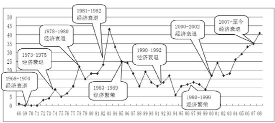 “337條款”是美國《1930年關稅法》第337節(jié)的簡稱,現被匯編在《美國法典》第19卷第1337節(jié),主要調查進口貿易中侵犯知識產權以及其他不正當競爭的行為。通過美國歷次貿易立法不斷對“337條款”的修正與發(fā)展,該條款成為美國重要的貿易保護手段之一。 1929年美國經濟大蕭條是將“337條款”寫進《1930年關稅法》中的主要動因。1969-1970年的美國經濟危機以及20世紀70年代以來的美國貿易逆差,則使“337條款”成為新時期貿易保護的重要法律工具。 綜觀337調查的發(fā)展歷程,可見337調查和經濟危機是相伴相生:正是由于美國經濟危機的頻繁發(fā)生,“337條款”應運而生,也正是由于美國經濟危機的規(guī)律性發(fā)作,337調查得以翻云覆雨。當經濟衰退的時候,337調查就快速增長,而且和經濟衰退的程度緊密相關;當經濟繁榮的時候,337調查就快速下滑或處于低谷。(見下圖)