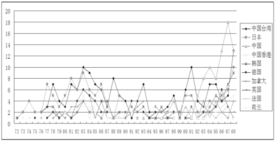 作為美國貿易保護主義的典型代表和貿易制裁的單方條款,337調查給國際貿易和產業(yè)發(fā)展帶來了很大的負面影響,并引發(fā)了世界各國的強烈不滿。 1983年,加拿大政府向GATT提請成立專家小組認定337條款違反GATT的規(guī)范;1989年,歐洲共同體向GATT就337條款與GATT之規(guī)定不符提請專家小組審理;2000年,歐盟要求在WTO框架下進行337條款的磋商,加拿大、日本也相繼加入;此外,美國國內主張自由貿易的力量也對337條款頗有微詞。 20世紀70年代,隨著日本經濟的振興和產品大量出口美國,日本成為337調查的主要目標,中國臺灣、中國香港和韓國等緊隨其后;20世紀80年代,中國臺灣超越日本,成為337調查的最大目標,日本、德國和中國香港緊隨其后,也是337調查的主要國家和地區(qū);20世紀90年代,隨著美國經濟的繁榮和對外貿易的需要,337調查也相應的進入低谷,受調查最多的國家和地區(qū)依次為中國臺灣、日本、加拿大和德國。進入21世紀以來,隨著中國產品大量出口美國,中國已成為337調查的最大目標國。隨著美國經濟的衰退和貿易保護主義的抬頭,針對中國臺灣、日本、德國、韓國、中國香港、加拿大等國家和地區(qū)的337調查也在快速增長。(見表、圖)