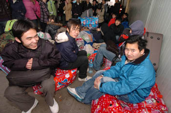 1月21日,在西安火車站候車的幾名旅客正等待踏上回家的行程。記者 陳昌奇/攝