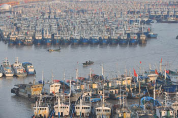 1月12日,舟山沈家門漁港停滿了回港避風(fēng)的漁船。當(dāng)日,舟山市氣象臺發(fā)布大風(fēng)橙色預(yù)警信號,受冷空氣影響,舟山近外海漁場風(fēng)力9- 10級,陣風(fēng)11級,13日- 14日最低氣溫零下2到零下4攝氏度左右。