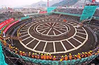 2009年12月15日,中國(guó)首個(gè)第三代核電自主化依托項(xiàng)目——中核集團(tuán)公司三門核電工程一期工程2號(hào)機(jī)組核島正式開工建設(shè)。這標(biāo)志著全球首座AP1000核電站建設(shè)進(jìn)入全面施工階段。新華社記者 譚進(jìn)/攝 |