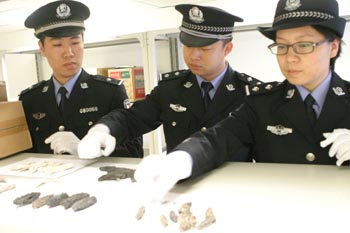 沈陽海關(guān) 緝私人員清點(diǎn)查獲的海參。 |