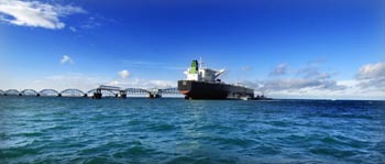 一艘油輪?吭谘笃指30萬噸級(jí)原油碼頭。新華社記者 趙穎全