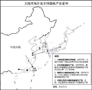 繼韓國三星、LG、日本夏普等面板生產(chǎn)巨頭競相到中國內(nèi)地投資建設(shè)高世代液晶面板生產(chǎn)線之后,臺灣經(jīng)濟(jì)主管部門近日也宣布有條件開放6代以上TFT-LCD面板企業(yè)赴內(nèi)地投資。至此,中國內(nèi)地已成為全球彩電面板產(chǎn)業(yè)的最熱投資地。 業(yè)內(nèi)分析人士認(rèn)為,中國內(nèi)地快速增長的平板市場是推動全球面板產(chǎn)業(yè)變局的主因,國內(nèi)彩電企業(yè)集中采購臺灣面板推動了日本、韓國向內(nèi)地轉(zhuǎn)移生產(chǎn)線,而后者又加速了臺灣地區(qū)的政策“松綁”,從而形成產(chǎn)業(yè)互補(bǔ)局面。