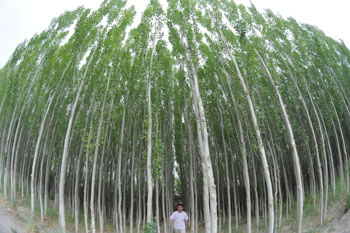 昔日瀚海戈壁今朝樹木成林