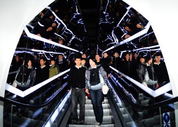 在世博會(huì)五個(gè)主題館中,“城市人”館是唯一一個(gè)直接講述生活在城市社區(qū)中的人的狀態(tài)的。走進(jìn)這個(gè)展館,首先映入眼簾的就是代表著這個(gè)展館設(shè)計(jì)師理念的導(dǎo)語,讓你初步了解整個(gè)展館的展示內(nèi)容: “在城市人館里,跟蹤和記錄了世界上6個(gè)不同城市家庭的真實(shí)生活,并詮釋了吸引人們來到城市的主要原因,不同的城市如何滿足人們的基本需要和內(nèi)心渴望。 多元化的供應(yīng)和大量的選擇機(jī)會(huì)讓城市極具吸引力,安全健康的居住環(huán)境,讓人滿意的工作,學(xué)習(xí)和發(fā)展機(jī)會(huì),良好的醫(yī)療保障,可靠的社交網(wǎng)絡(luò),豐富的休閑娛樂設(shè)施等,這些要素讓我們的城市和生活更加美好……” 拐進(jìn)第一個(gè)展廳,可以看見幾個(gè)從屋頂延至地面的長屏幕,屏幕上的大字不斷變幻,“你在這個(gè)城市生活了幾年?”“你在哪里與朋友見面?”“你能呼吸到新鮮的空氣嗎?”……一些關(guān)于生活質(zhì)量的問題次第展開,對(duì)生活的思索,就這樣從踏進(jìn)城市人館的第一步開始了。 進(jìn)入“人口”展廳,整個(gè)展館的主角是來自全球不同城市的6個(gè)家庭。講述原生態(tài)的普通家庭生活故事,通過生活中平凡的點(diǎn)點(diǎn)滴滴來展示蘊(yùn)含其中的生活真諦,正是展館設(shè)計(jì)師的獨(dú)具匠心之處。 設(shè)計(jì)團(tuán)隊(duì)跟蹤拍攝的6個(gè)家庭各有特點(diǎn):來自北美洲鳳凰城、南美洲圣保羅市和非洲加納特馬市的,分別是三個(gè)“核心家庭”,由健全的父母和孩子組成、代表世界上大多數(shù)城市家庭的模式;來自歐洲鹿特丹的,是一個(gè)“獨(dú)身家庭”,一名男性從事創(chuàng)意產(chǎn)業(yè);來自大洋洲墨爾本的,是一個(gè)“空巢家庭”,年輕人去外地工作,家里只留下兩位老人;而來自中國鄭州的,是四代同堂的一個(gè)20多人的大家庭,這個(gè)位于黃河流域的家庭很典型地代表了中國傳統(tǒng)家庭的生活狀況。 走進(jìn)“家庭”展區(qū),天花板和地面的鏡面鋪設(shè),營造出透過某幢建筑物的窗戶窺視這6個(gè)家庭生活場(chǎng)面的效果。站在中間,環(huán)視圍繞四周墻壁的大屏幕,你可以看到在同一時(shí)間6個(gè)不同家庭的生活場(chǎng)面。通過比較,看到各個(gè)家庭追求幸福的不同方式。 接著是“工作”展區(qū),一臺(tái)被隱喻為“工廠、證券交易所和時(shí)鐘”的大型機(jī)器上,安裝了諸多大小不一的屏幕。大屏幕上呈現(xiàn)6個(gè)家庭的工作情況,小屏幕上顯示各種與工作相關(guān)的統(tǒng)計(jì)數(shù)據(jù)! 進(jìn)入“學(xué)習(xí)”展區(qū),就像進(jìn)入了書籍的海洋。展區(qū)的四面墻都由巨大的書架構(gòu)成,書架中,若干個(gè)播放家庭成員學(xué)習(xí)影像的大屏幕,如同一個(gè)個(gè)打開的窗口,展現(xiàn)家庭成員學(xué)習(xí)的場(chǎng)景和6個(gè)城市所提供的教育資源。 交往是人類的必然需求,也是在一個(gè)社區(qū)中維系人與人之間關(guān)系的紐帶。在“交往”展區(qū),天幕映射加上圍幕電影的全屏幕放映,讓你從走進(jìn)展廳的第一步起就進(jìn)入了6個(gè)家庭的家庭成員的社交網(wǎng)絡(luò),屏幕中的人物和場(chǎng)景不斷變幻,一個(gè)人物從一個(gè)屏幕場(chǎng)景走到另一個(gè)場(chǎng)景,從學(xué)校到家庭、到社區(qū)、到醫(yī)院,環(huán)繞一周全面展示不同場(chǎng)合的社交狀態(tài),讓你也產(chǎn)生身臨其境之感,同時(shí)也聯(lián)想到自己的社交生活。 走出知識(shí)的殿堂,就會(huì)發(fā)現(xiàn)置身于一片生活用品堆砌而成的“藝術(shù)品”中。牛奶盒、腳手架、油漆罐、百葉窗、籃球架等,都成了展示的材料,這些材料經(jīng)過藝術(shù)化的處理,現(xiàn)場(chǎng)搭建出“建設(shè)中的城市”“貧民窟”“夜市”“商業(yè)街”“休閑集市”等各不相同的場(chǎng)景。 點(diǎn)題之處設(shè)計(jì)最為精妙,在出口處抬頭望,6個(gè)家庭成員送別觀眾的照片最終變幻成一行字:人就是城市。 原來生活的百味早已在一天又一天甚至有些重復(fù)的日子中品遍,原來能夠和家人在一起過平凡的生活就是最大的幸福。不論城市有多大,科技有多先進(jìn),人們用來衡量一個(gè)住所好壞的標(biāo)準(zhǔn),始終根植于自己內(nèi)心的訴求。