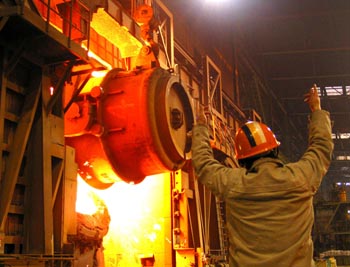 武鋼的煉鋼工人在緊張工作。新華社發(fā) |