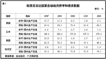 2010年國家信用風險總體水平仍處于高位。2010年全球經(jīng)濟雖然將結(jié)束收縮,但是產(chǎn)出恢復的速度總體將較慢且非常不平衡,全球政府債務規(guī)模卻繼續(xù)快速增長。大公估計2009年全球財政收入下降了9.0%,而支出卻增加了3.6%,導致全球赤字水平上升到占國內(nèi)生產(chǎn)總值的7.3%,與2008年比上升了5個百分點,上升幅度達到217%。2010年全球財政收入會有所提高,但仍未恢復到2008年的水平,在財政支出繼續(xù)上升的作用下,赤字占國內(nèi)生產(chǎn)總值仍將高達6.8%(見表2)。 盡管全球國家信用風險總體水平仍在高位,但是各地區(qū)風險的幅度,可控的程度差距很大。中東和非洲國家在金融危機爆發(fā)前總體上都保持了財政盈余,拉美和東亞國家略有赤字,除少數(shù)國家外,這些地區(qū)各國債務水平普遍較低,加之受金融危機影響較小,總體經(jīng)濟形勢在2010年將加速好轉(zhuǎn)趨勢,因此金融危機爆發(fā)后債務雖有所上升,但風險上升幅度尚可控。中東歐和獨聯(lián)體國家因國際資本流入恢復緩慢和出口增長前景不甚樂觀,難以在短期內(nèi)治愈本國的經(jīng)濟和金融危機,私人部門對外債務違約已經(jīng)不可避免,但是加入歐盟的中東歐國家因能夠受到歐盟和國際貨幣基金組織的雙重救助,政府違約的可能性較小。多數(shù)獨聯(lián)體國家政府直接債務和擔保債務都較輕,雖然私人部門對外違約幅度大,但政府通過對私人部門不予大規(guī)模救助的方式保證了自身的償債能力。在上述地區(qū),2010年國家信用風險較大的是烏克蘭、匈牙利、羅馬尼亞、巴基斯坦和越南等。 國家信用風險復雜化表現(xiàn)在主要發(fā)達國家信用風險普遍惡化,同時出現(xiàn)局部危機,其未來發(fā)展演變具有較大的不確定性。發(fā)達國家史無前例的政策干預使財政在可持續(xù)性上面臨越來越步履維艱的困境。2010年美國、英國、愛爾蘭、希臘、冰島等國政府的赤字占國內(nèi)生產(chǎn)總值的比例都將在10%以上,其他主要發(fā)達國家日本、德國、法國、意大利、西班牙的赤字水平也將處于高位。日本、意大利、冰島、希臘、比利時等國的各級政府債務占國內(nèi)生產(chǎn)總值的比例超過100%;美國、葡萄牙、法國等國的各級政府債務占國內(nèi)生產(chǎn)總值的比例達到90%以上;德國、愛爾蘭、加拿大、英國等各級政府債務占國內(nèi)生產(chǎn)總值的比例在80%以上(部分數(shù)據(jù)見表3)。歐元區(qū)國家中的薄弱環(huán)節(jié)希臘、葡萄牙、西班牙等因經(jīng)濟繼續(xù)萎縮,而債務快速上升引起了市場的深度擔憂,導致利率飆升,希臘已經(jīng)無法從市場融資而步入國際貨幣基金組織和歐盟多邊援助的行列。由于歐元區(qū)國家各級政府債務被國外投資者持有的比例非常高,其中包括大量金融機構(gòu),這使風險容易擴散到還正在去杠桿化的全球金融體系,國家信用風險已經(jīng)成為新的金融風險來源。歐元區(qū)國家不得不以各國財政做擔保救助危機國的措施雖暫時穩(wěn)定了局勢,但能否引領(lǐng)歐元區(qū)走出危機尚不確定。歐元為全球第二大儲備貨幣,歐元區(qū)主權(quán)債務危機對與歐元區(qū)國家聯(lián)系較緊密的其他國家的經(jīng)濟和金融前景都將產(chǎn)生不利影響。 發(fā)達國家信用風險的上升既有金融危機的促成作用,也是歷史上長期存在制度性困境的結(jié)果,其發(fā)生和深化是必然的。 資本主義市場經(jīng)濟制度會導致金融債務的不斷膨脹和財富的日益集中,從而在一定的條件下演化為經(jīng)濟危機。當經(jīng)濟增長速度快時,勞動者和政府收入的增長也較快,掩蓋了其危害性。自上世紀七十年代以來,老牌資本主義國家的經(jīng)濟因缺乏增長動力出現(xiàn)停滯趨勢,為此發(fā)達國家普遍開展了新自由主義經(jīng)濟改革,導致分配向著有利于非勞務性收入的方向發(fā)展,財富越來越集中在少數(shù)人手中。與之配套的稅收改革使稅收負擔的90%落在產(chǎn)品和勞務身上,使稅收增長與經(jīng)濟增長高度相關(guān),在發(fā)達國家經(jīng)濟增長率普遍偏低的情況下,稅收收入的增長也是緩慢的。由于政府和勞動階層收入增長緩慢,支出能力下降,資本為了維持其贏利性,需要通過向政府和大眾提供債務的方式促進增長。因此老牌發(fā)達國家債務飆升成為過去四十年資本主義經(jīng)濟最突出的特征之一。 發(fā)達國家政府債務負擔普遍較重的另一個主要原因是社會福利支出過高。發(fā)達國家長期通過優(yōu)厚的社會福利制度彌補因貧富懸殊造成的不公平現(xiàn)象,福利支出占據(jù)了財政支出的很大部分。2004-2008年歐盟各國政府福利支出占財政支出的比例保持在42%左右,歐元區(qū)該比例則始終為45%,美國該比例在40%-38%之間。由于社會福利制度涉及利益相關(guān)方眾多,既得利益群體有強烈的欲望抵制改革,較大幅度改革將引起不可避免的社會動蕩,以致福利制度僵化,財政支出的可壓縮性小。雪上加霜的是人口老齡化趨勢加快和有工作意愿的勞動力數(shù)量減少等將使福利開支在未來呈現(xiàn)進一步增大的趨勢。 以上方面的體制性原因造成多數(shù)發(fā)達國家政府長期赤字,債務負擔沉重,但是在此次金融危機發(fā)生之前,發(fā)達國家政府債務的可持續(xù)性并未受到較大質(zhì)疑,這