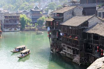 圖為游客在湘西鳳凰沱江上泛舟欣賞沿岸的特色民居。新華社記者 龍弘濤/攝 | 免費(fèi)西湖帶動(dòng)杭州“大旅游”產(chǎn)業(yè)增值