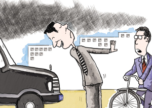 1月28日,江蘇省政協(xié)委員朱曉東騎自行車參加兩會時,在賓館門口被門衛(wèi)拒絕進入。朱曉東稱,“開汽車到星級賓館,有人主動、熱情為你引路,但你騎自行車卻根本進不了門!保ㄒ1月29日《東方早報》)