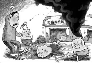 2月17日,河北武安市一非法鐵礦發(fā)生爆炸,造成24名礦工不幸罹難,5名礦工受傷。據(jù)悉,該非法鐵礦掛牌“特種野豬養(yǎng)殖場”,以其為幌子,想方設(shè)法逃避執(zhí)法。但開采3年,當(dāng)?shù)貓?zhí)法部門卻一概不知。(《法制日報》2月20日)