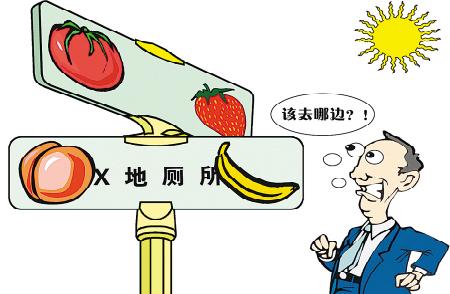 近日河南對(duì)全省城市公共標(biāo)志做了一次調(diào)查,結(jié)果鄭州的公共標(biāo)志最差最亂,公廁標(biāo)志的不合格率高達(dá)60%以上。有公廁男廁門上是個(gè)“香蕉”的標(biāo)志,女廁門上是“壽桃”的標(biāo)志,常有顧客猶豫不敢進(jìn)。(相關(guān)報(bào)道見14版) 公共標(biāo)志不是藝術(shù)創(chuàng)作,原因很簡單,旨在為民眾提供生活便利引導(dǎo)的公共標(biāo)志,應(yīng)該也只能以便民為前提。如果說“富有創(chuàng)意”的廁所名稱,會(huì)引發(fā)如廁者茫然無措的尷尬的話,那么,交通指示牌不規(guī)范,則會(huì)呈現(xiàn)更嚴(yán)重的癥狀——司機(jī)被罰款、路人迷路事小,公共交通安全事大。況且,公共標(biāo)志的問題,不僅僅存在于如廁和交通兩個(gè)方面,涉及公共生活的所有細(xì)節(jié)。