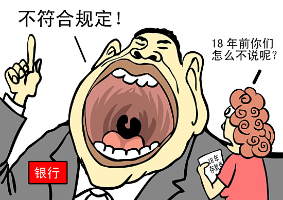安徽的陶玲,18年前在銀行存了1000元,按存款單約定,18年后她將以15.793%的月息得到利息,如此1000元將變成3.4萬元。如今存款到期了,銀行以定期存款沒有18年期,且高息不符合央行規(guī)定等理由,至今未給她兌付利息。(據(jù)安徽商報)