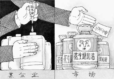據《新華網》報道,某市市民對自己購買的花生調和油是否真正含有花生油產生疑問。工商部門受理其投訴,調查發(fā)現其所購買的油料的生產廠家根本不具備生產花生調和油的資格。逐利是商家的本性,只是責怪商家見利忘義似乎改變不了什么,F在食用油行業(yè)沒有國家統(tǒng)一的行業(yè)標準,那么一桶油里面只要有一滴花生油,也可以叫做“花生調和油”。老百姓要想吃上滿意的花生調和油,必須有國家和行業(yè)標準出臺,并對企業(yè)予以嚴格規(guī)范,才有保障。