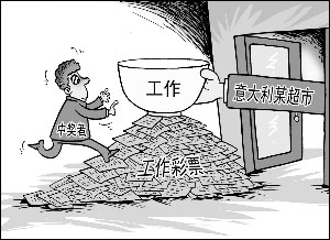 為幫助失業(yè)者,意大利蒂格羅斯公司旗下59家連鎖超市推出工作彩票,中獎?wù)邔@得一份超市工作機會,月薪最高可達1200歐元(約合1711美元)。預(yù)計工作彩票將發(fā)出70萬張,公司計劃拿出10個工作機會。