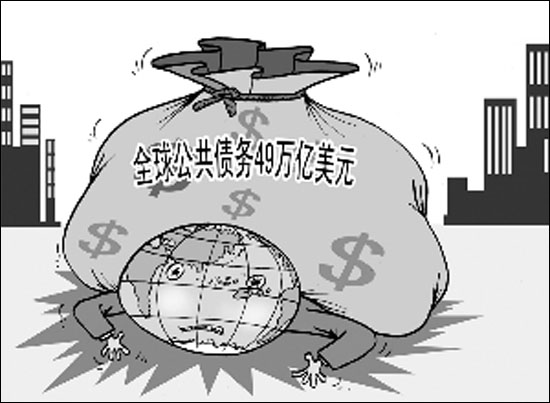 2008年全球的公共債務(wù)總額占全球國內(nèi)生產(chǎn)總值的63%,為10年多來最低水平。但在危機(jī)環(huán)境下,今明兩年各國公債大增,穆迪公司最新發(fā)布的一份報(bào)告估計(jì),2010年全球公共債務(wù)總額預(yù)計(jì)將達(dá)49萬多億美元,占比將達(dá)80%。