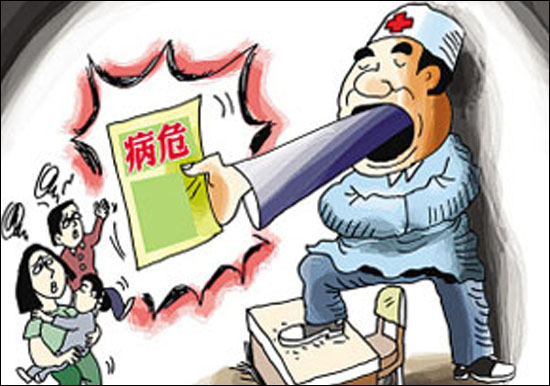 重慶某醫(yī)院醫(yī)生沒詳細(xì)檢查患兒就開了病危通知書,三歲女孩外婆險些暈倒。結(jié)果只是普通感冒,三天后孩子就沒事了(1月21日《重慶晚報》)。