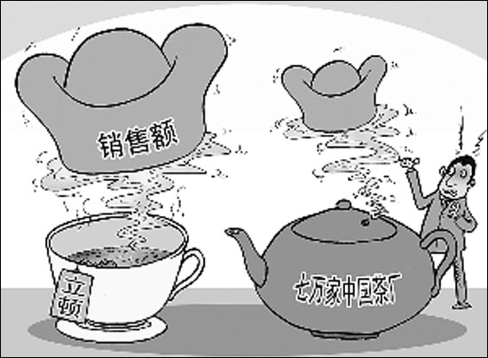 中國是茶葉之鄉(xiāng),但近日據(jù)報,7萬家中國茶廠,平均每家年產(chǎn)茶葉20萬噸,在國際市場上的總銷售額卻比不過一家英國立頓。人大代表、更香公司董事長俞學文認為,癥結(jié)在茶企各自為政,缺乏強強聯(lián)合,科研薄弱。